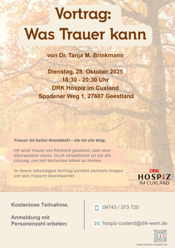 26. September 2025: Vielleicht ist dieser ganz grundständige und grundsätzliche Vortrag zu Trauer ja für Sie interessant.