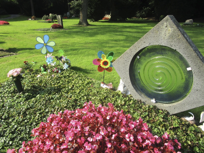 Anschließend findet die Urnensammelbeisetzung der sog. Sternenkinder aus dem vorherigen Quartal auf der abgebildeten Gemeinschaftsgrabstelle auf dem schönen Huckelrieder Friedhof statt.