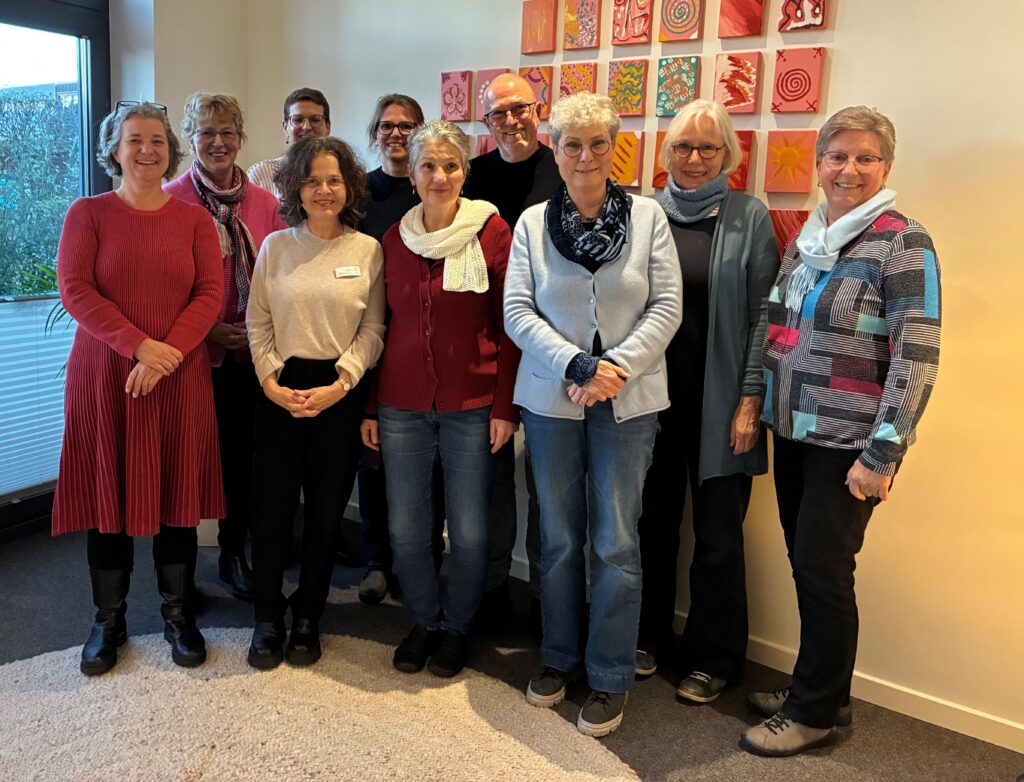 15.+16. Februar 2025: In unserem informellen Netzwerk Trauer am Arbeitsplatz veranstalten wir einmal jährlich ein Präsenztreffen, um als Trainer/innen und Berater/innen unsere Erfahrungen und Methoden auszutauschen. Dieses mal in Gauting bei München mit Daniela Musiol (Wien), Iris van Bergen (Stuttgart), Frauke Sörensen (Hamburg), Mechthild Herberhold (Altena) (alle stehend von links), Anja Gebhardt (Bonn), Franziska Offermann (Gauting), Thomas Geldmacher (Wien) und mir.